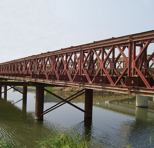國內專業生產貝雷鋼橋較大企業之一。公司擁有貝雷鋼橋研發(fā)專業工程技術人員20余人,擁有能指導、執(zhí)行行業標準的人才和國內先進的制造工藝。目前已開發(fā)出各種高抗彎、高抗剪貝雷桁架梁新產品,滿足公路—I級、城—A級、HS25(美國荷載標準)、HA(英國荷載標準)等荷載要求。經實際運用,為大型工程施工中的超汽60、掛100車輛的通行發(fā)揮了巨大作用。